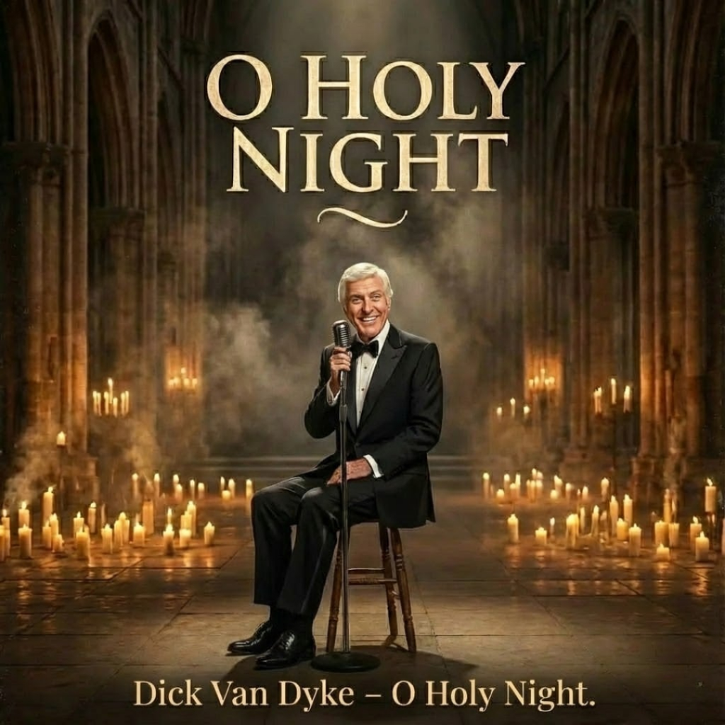 Inside an empty church — no audience, no applause waiting at the end — Dick Van Dyke stands alone with a single microphone and a well-worn songbook. The pews are vacant. The stained-glass windows filter in soft, muted light. Stone walls that have heard centuries of prayers now hold their breath once more. And into that stillness, a familiar voice begins to sing O Holy Night.