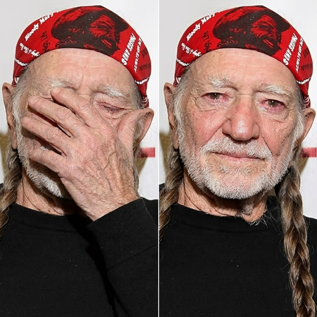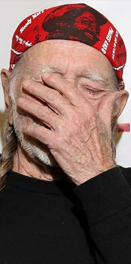 Willie’s hands rested loosely in his lap, weathered fingers marked by decades of strings and stages. His eyes, usually warm with humor and mischief, carried something else now — exhaustion, reflection, and the unmistakable weight of a life lived fully but not without cost.