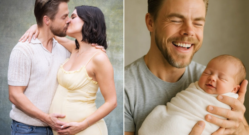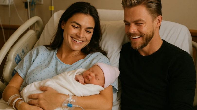 Los Angeles woke up to a sunrise of joy, tenderness, and celebration as Derek Hough — world-renowned dancer, choreographer, judge, and beloved entertainer — officially welcomed his new baby early this morning. The private hospital in Los Angeles was quiet, tucked away from the noise of paparazzi and reporters, yet inside the walls of one room, a moment of pure magic unfolded.