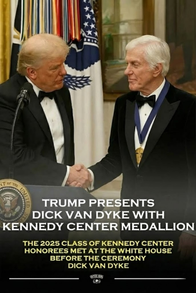 It was supposed to be a formal evening — one filled with speeches, ceremony, and the timeless dignity of the Kennedy Center Honors. But last night, the grand celebration took an unexpectedly warm and charming turn when President Donald Trump presented the prestigious medallion to Hollywood legend Dick Van Dyke… and paused mid-speech to admire, with playful awe, the entertainer’s iconic silver hair.