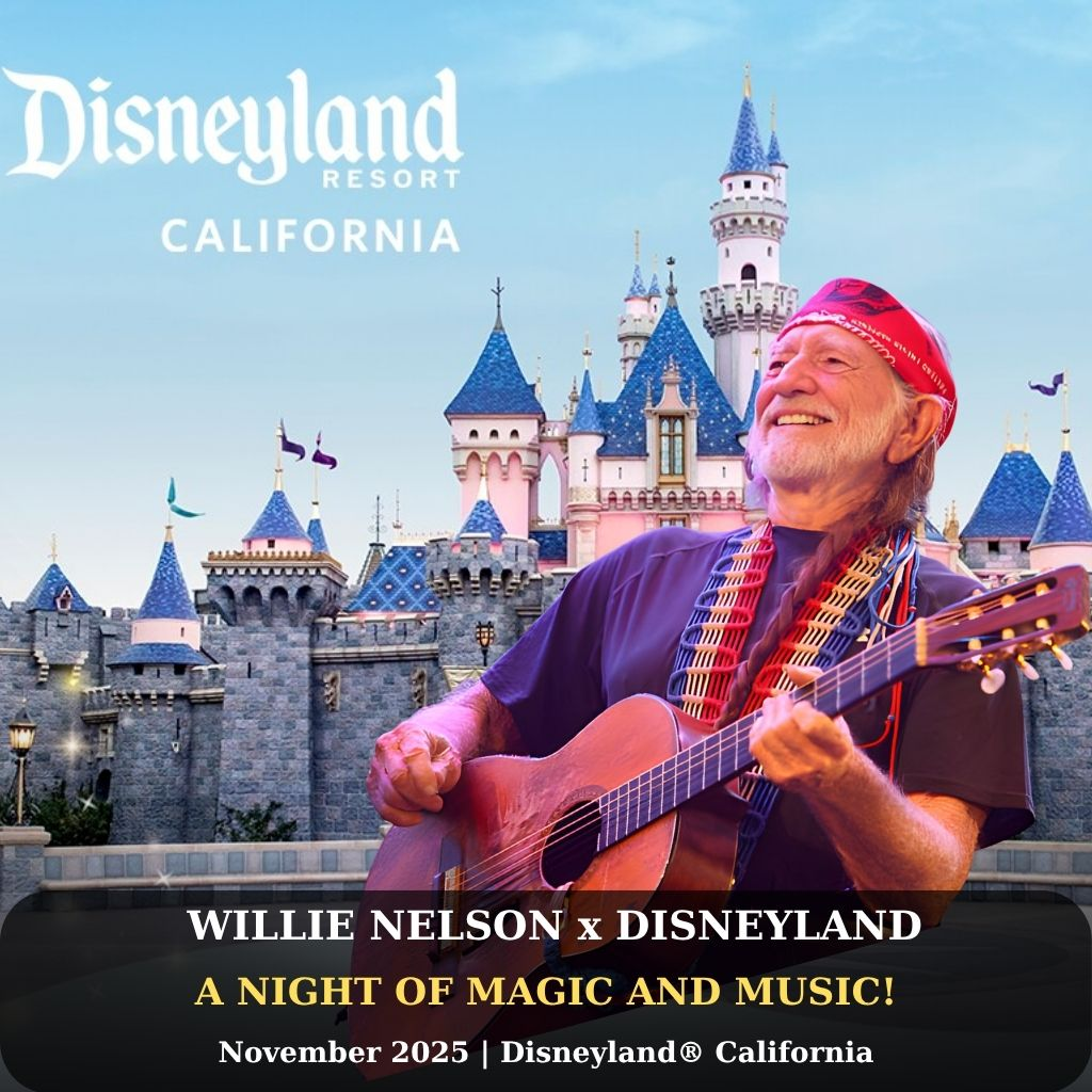This November, the voice of “On the Road Again” will echo through the happiest place on Earth. For three unforgettable nights, Willie Nelson — the outlaw poet of American music, the heart of Texas, the man whose songs have carried generations through joy and sorrow — will step onto a brand-new kind of stage: Disneyland California.