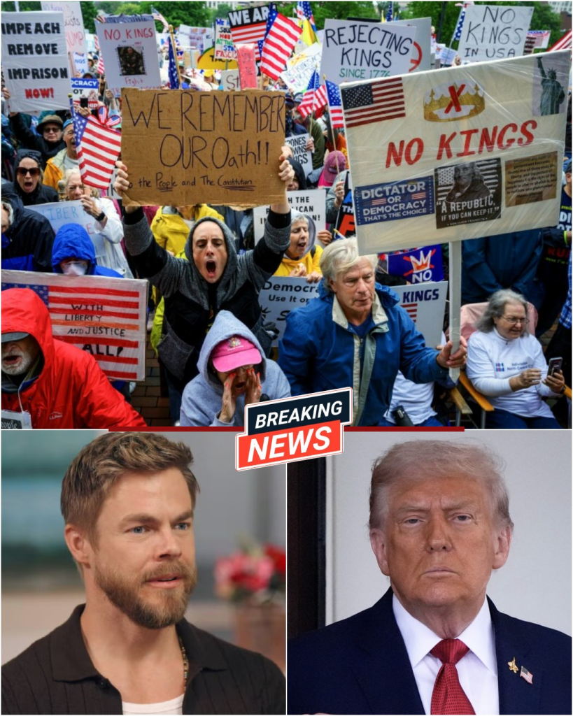 Within seconds, screenshots spread like wildfire. His millions of followers froze, staring at the words in disbelief. Then came the avalanche. Fans, journalists, and fellow entertainers dove into the comments — half defending, half condemning. The phrase “No Kings Day” trended within minutes, while “Derek Hough” surged to the top of X (formerly Twitter) with over 3 million mentions before noon.