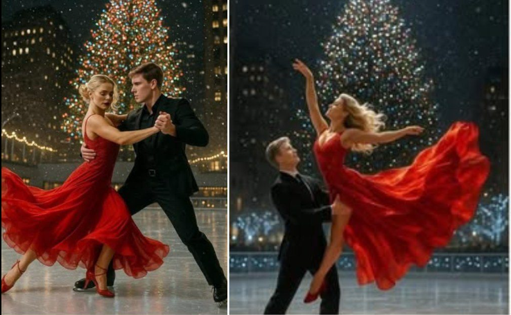 Eyewitnesses say the duo moved across the pavement exactly like Olympic figure skaters — not ballroom dancers, not street dancers, but skaters. At one point, they slipped into a synchronized traveling glide so smooth the crowd gasped as if a sheet of ice had magically spread beneath their feet.