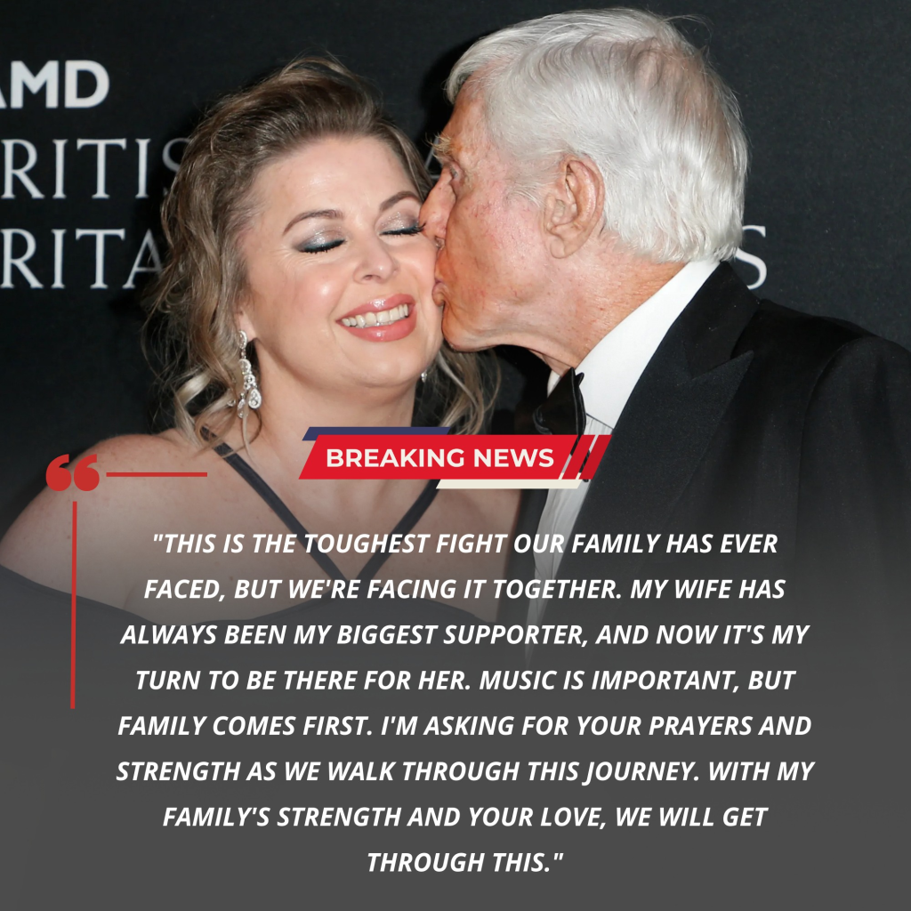 To his right, his wife gently placed a hand on his shoulder. To his left, his children stood strong, united, protective. Their presence told the story no headline could capture — that this wasn’t a press announcement, but a family heartbreak shared with millions who had loved him for a lifetime.