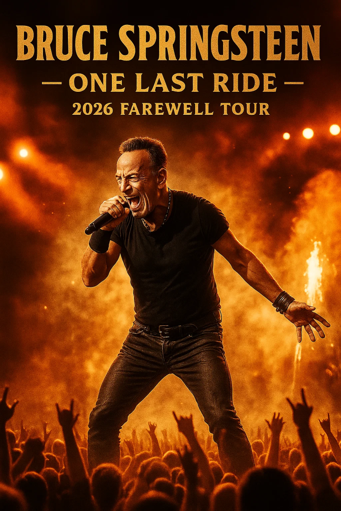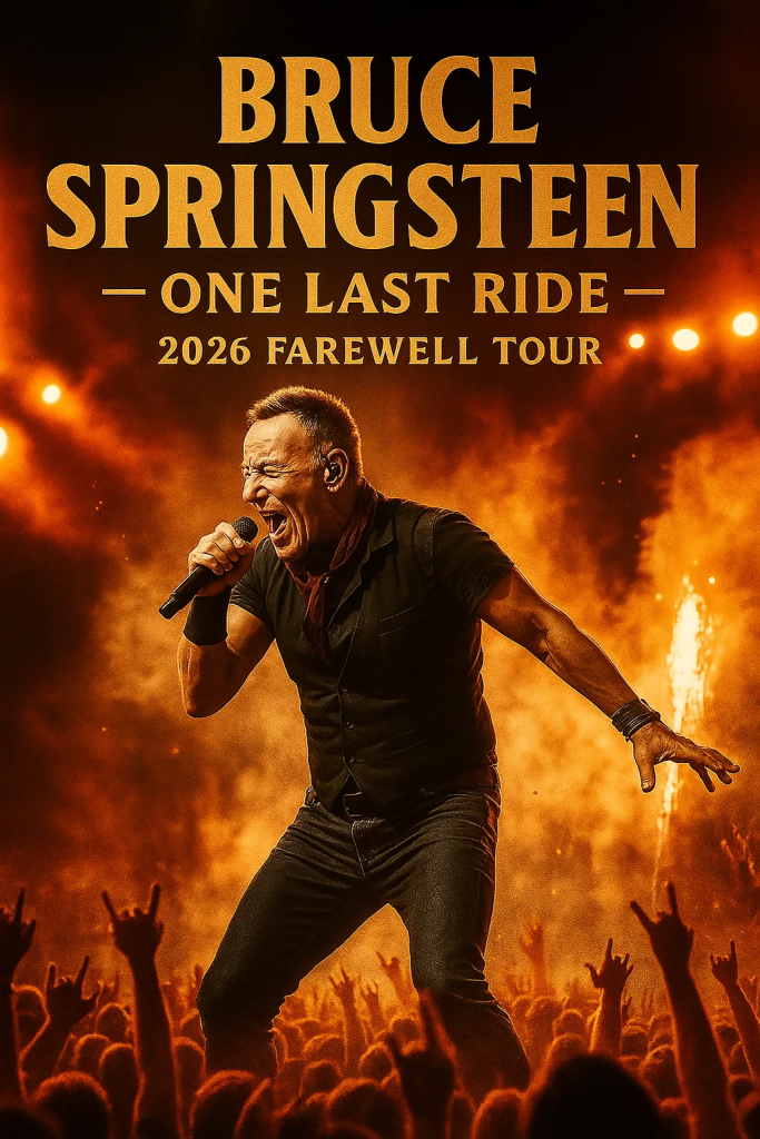 After more than five decades of thunder, poetry, and working-class fire, Bruce SpringsteenThe Boss — has officially announced his final world tour: “One Last Ride.” The year 2026 will mark the closing chapter of a musical odyssey that began in the bars of Asbury Park and blazed across the world’s biggest stages.