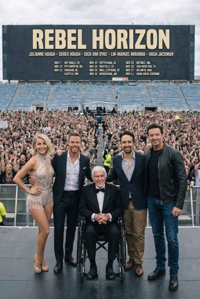 vIn an announcement that has sent shockwaves through the entertainment world, five of the most celebrated performers of our time have officially confirmed an unprecedented collaboration. Julianne Hough, Derek Hough, Dick Van Dyke, Lin-Manuel Miranda, and Hugh Jackman are joining forces to bring audiences an extraordinary live experience: the Rebel Horizon Tour 2026. Fans, industry insiders, and casual observers alike are already calling it a once-in-a-generation event that promises to redefine what a live performance can be.