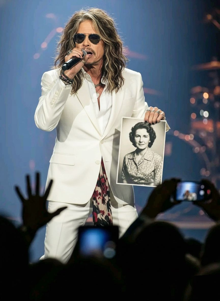 Insiders later revealed that the moment had not been scripted. Tyler had been carrying that same photograph for years — tucked inside a leather wallet, worn from time and travel. “He keeps it with him everywhere,” said a longtime crew member. “He touches it before every show. But this was the first time he ever shared it with the world.”