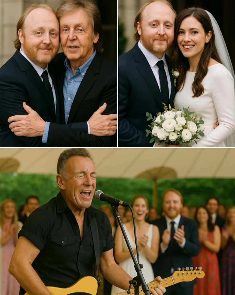 Nobody saw it coming. In a quiet, love-soaked ceremony, James McCartney — son of the legendary Paul McCartney — tied the knot surrounded by close friends and family. The day had all the makings of a tender, understated celebration: a small gathering, heartfelt vows, and an atmosphere that radiated intimacy more than spectacle. But then came the twist that turned a sweet wedding into a once-in-a-lifetime cultural moment: Bruce Springsteen, “The Boss” himself, grabbed a guitar, stepped forward, and delivered a performance that left the entire room in tears.