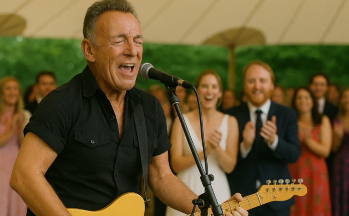 And then, as the ceremony turned into a reception filled with laughter, clinking glasses, and hugs, the energy in the room shifted. Few knew Bruce Springsteen was even there. A longtime friend of Paul McCartney, Springsteen had quietly joined the celebration, blending in among the guests. But when he reached for a guitar and stepped toward the center of the room, silence fell.