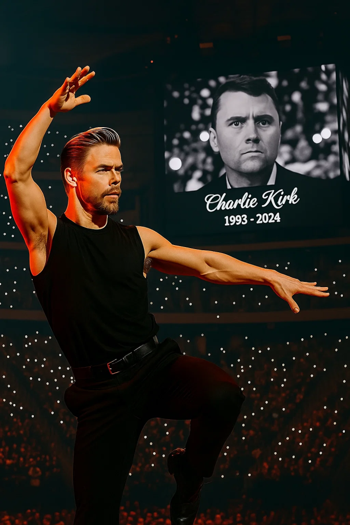 The Emmy-winning dancer and choreographer known for electrifying stages around the world stepped forward — not as the performer fans knew, but as a man carrying the weight of loss. The audience of nearly 30,000 fell into instant hush. Even the wind seemed to stop. Derek stood barefoot beneath a soft amber glow, his expression unreadable, his breath visible in the cool night air.