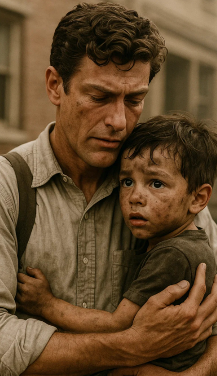 Under a table, clinging to a stuffed bear half-covered in ash, was the boy. Van Dyke crouched low, wrapped him in his coat, and whispered, “You’re safe now, son.” Then, holding the child close, he pushed through the smoke and out into the cool night air.