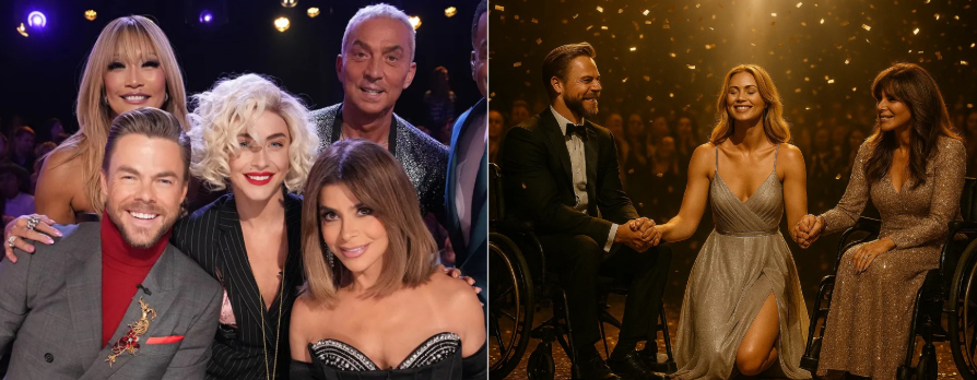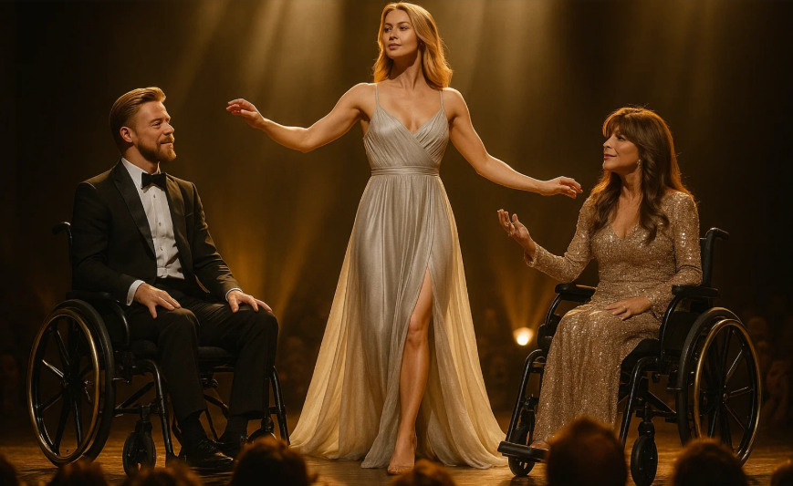 As the curtain rose inside the packed Dolby Theatre, a hush swept across the audience. Thousands held their breath, sensing that what was about to happen would live forever in the memory of dance itself. The lights dimmed to a single golden beam, illuminating two wheelchairs placed at opposite ends of the stage. In one sat Derek Hough, the Emmy-winning dancer and choreographer whose artistry has inspired millions. Across from him sat Paula Abdul, the pop legend and pioneer whose movement redefined an era.
