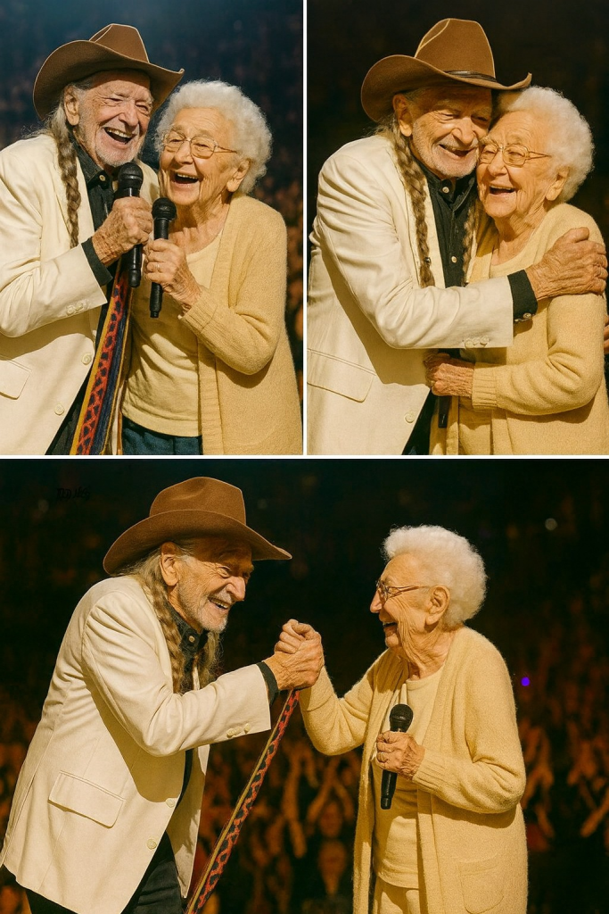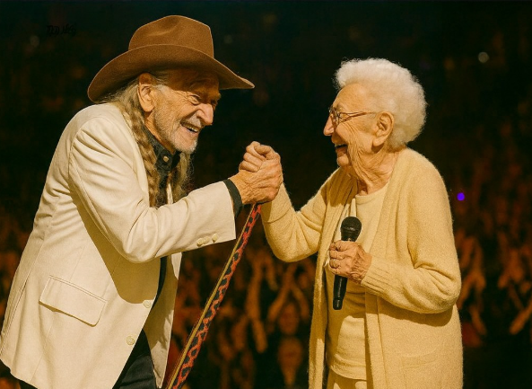 Margaret’s lips parted, and out came a voice that silenced every breath in the room. It wasn’t polished or powerful, but it was pure — unguarded, honest, filled with decades of memory. Willie’s weathered baritone wrapped around hers like an old friend returning home. The two voices, one aged by time and the other by tenderness, intertwined perfectly — a harmony shaped not by practice, but by life itself.