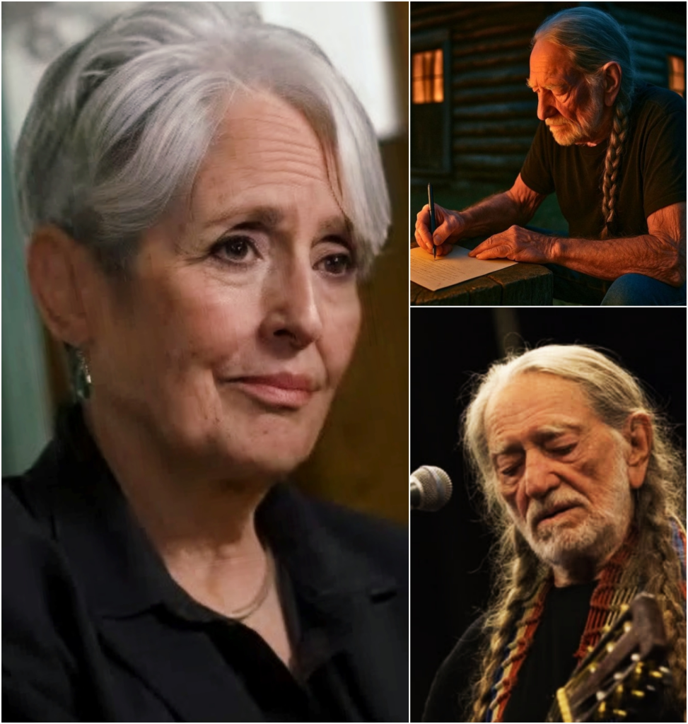 Joan Baez, the voice of protest and poetry herself, has revealed something that few dared to imagine: Willie Nelson, the 92-year-old outlaw who built America’s heartland into melody, is writing what he calls his “final song.” No fanfare. No press conference. No farewell tour. Just one last ballad — written not for charts, not for awards, but for peace.