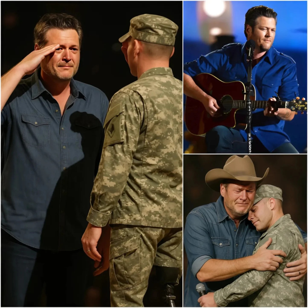 During what was expected to be a routine tour performance, country music superstar Blake Shelton turned an ordinary night into one of the most emotional and unforgettable moments of his entire career. While performing his hit patriotic anthem “God’s Country”, Shelton did something no one in the audience could have predicted — he paused the show and invited a young wounded veteran onto the stage.