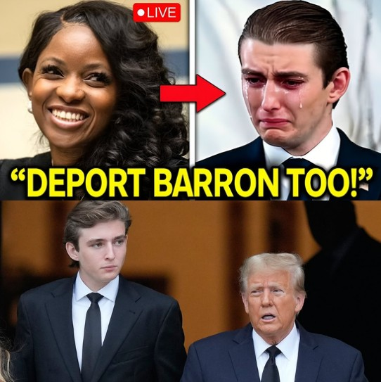 According to eyewitnesses and stunned viewers around the country, former President Donald Trump’s youngest son, Barron Trump, collapsed backstage moments after Representative Jasmine Crockett made a bombshell revelation — a revelation so unexpected, so personal, that it sent shockwaves through the entire Trump family and the watching world.