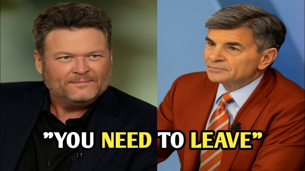 In a dramatized, hypothetical scenario that has the internet buzzing, country music superstar Blake Shelton found himself escorted off the set of Good Morning America after a tense, unscripted confrontation with veteran broadcaster George Stephanopoulos — a clash so uncomfortable, so charged, that it left the studio audience frozen and viewers at home wondering whether they had just witnessed a once-in-a-generation television implosion.
