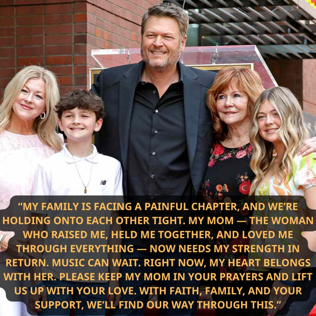 Because the announcement that came from Blake Shelton’s team did not sound like a routine scheduling update or a PR-polished statement. It sounded like something else entirely — something that sent shockwaves through the country music world, rippling outward with the force of a heartbreak no one saw coming.
