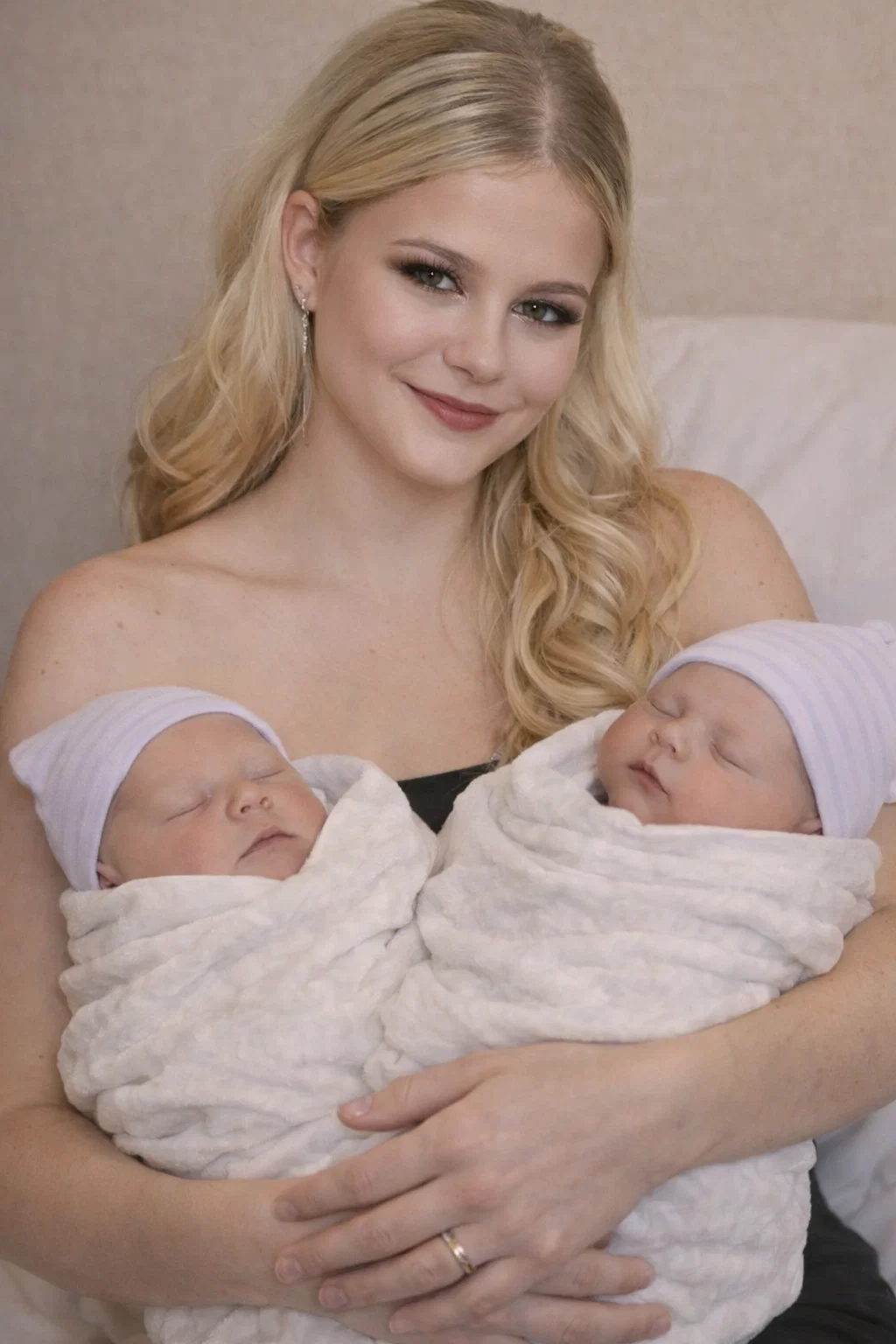 No caption filled with explanations. No press release. Just a soft, intimate image: Darci sitting quietly, holding two newborn babies in her arms. Her expression said more than words ever could — eyes glistening, a smile trembling between joy and disbelief.