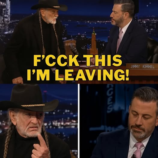Late-night talk shows are known for comedy, charm, and a bit of provocation. But on Tuesday night, Jimmy Kimmel Live delivered something no one saw coming — a showdown that left audiences stunned, social media ablaze, and Willie Nelson himself storming out of the studio in one of the most dramatic walk-offs in late-night television history.