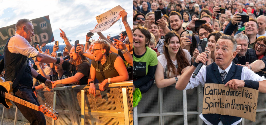 When Springsteen held the mic out during “The Rising,” 60,000 voices rose like a wave, so loud that Bruce stepped back, stunned. During “My Hometown,” entire families swayed shoulder to shoulder, some with tears rolling down their cheeks.