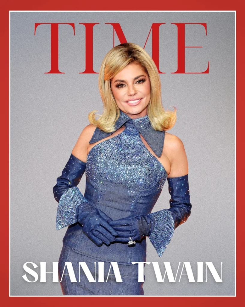 It was 8:03 a.m. when TIME dropped its digital cover featuring Shania’s fierce gaze, platinum hair cascading over a crimson jacket, her expression radiating the confidence of someone who has clawed her way through every barrier imaginable.