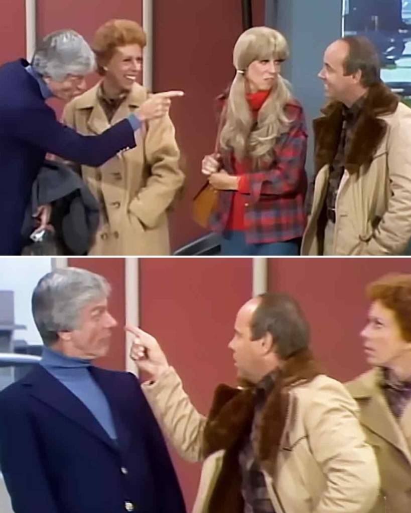 The sketch, titled “The Farewell Flight,” opens in the bustling chaos of a 1970s-style airport — a place ripe for confusion, sentimentality, and slapstick. Carol Burnett plays the slightly frazzled yet loving sister to Dick Van Dyke’s character, a man trying — and failing spectacularly — to make a graceful goodbye. Vicki Lawrence steps in as Carol’s sarcastic daughter, who somehow manages to make every tender moment hilariously awkward. And then, of course, there’s Tim Conway — the walking embodiment of comic mischief — who plays an airport attendant so absent-minded that you’d think gravity itself takes a break around him.