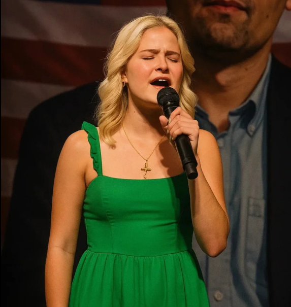The first notes rang out, and something extraordinary happened. Darci’s voice—clear, emotional, and unshaken—wrapped the audience in grief and gratitude. Each lyric carried the weight of memory, not only of Kirk himself but of the values he stood for.