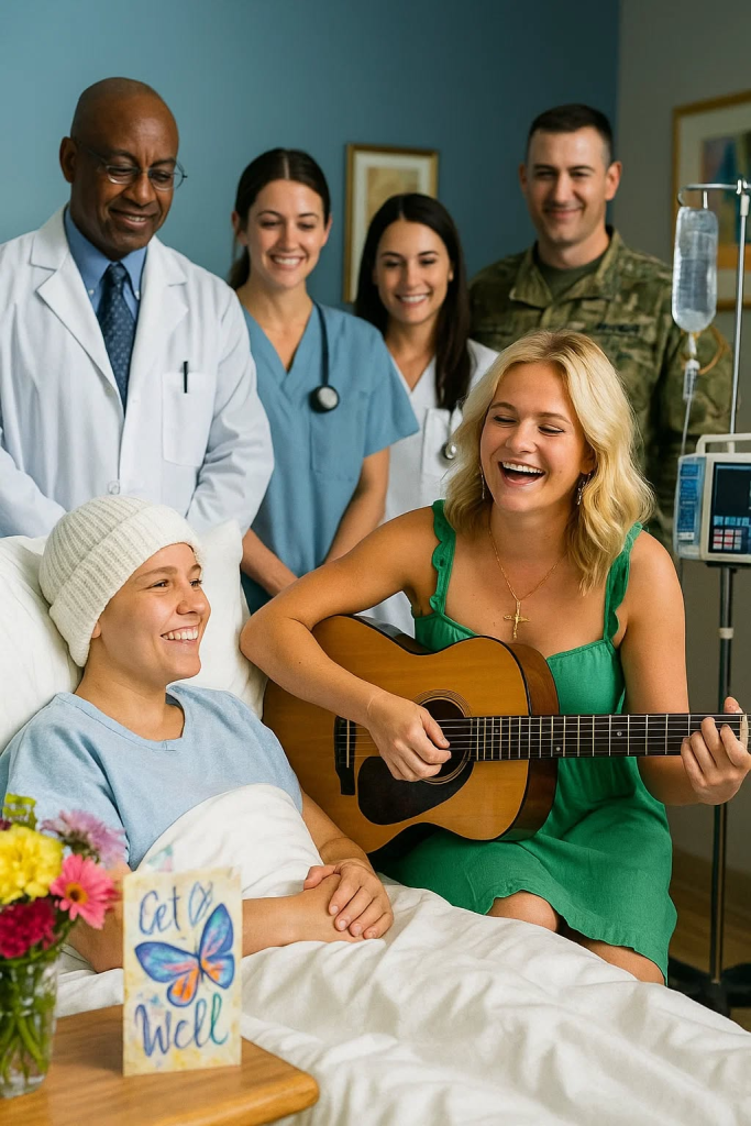 Halfway through the song, the little girl whispered something only Darci could hear. Darci nodded gently, tears shining in her own eyes, and shifted into the girl’s favorite lullaby. Her voice broke just slightly at the edges — not from lack of control, but from the tenderness of the moment.