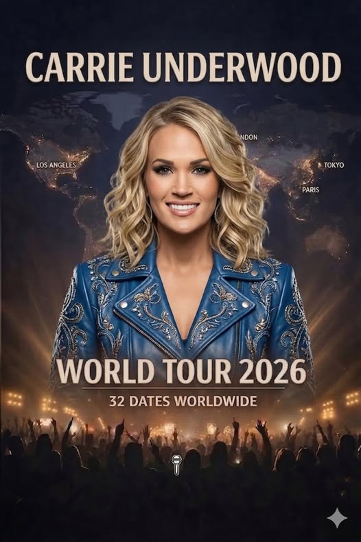 In a move that has sent waves across the global music scene, Carrie Underwood has officially unveiled her highly anticipated 2026 world tour, and the scale is nothing short of extraordinary. With 32 shows planned across three continents, the announcement marks one of the most ambitious chapters in her already legendary career.