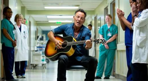In a dimly lit corridor of a New Jersey hospital, the world’s loudest rock star became the quietest man in the room. Bruce Springsteen — “The Boss,” the icon of thunderous anthems and working-class dreams — stood alone with a guitar slung across his shoulder, not to perform for millions, but for one.