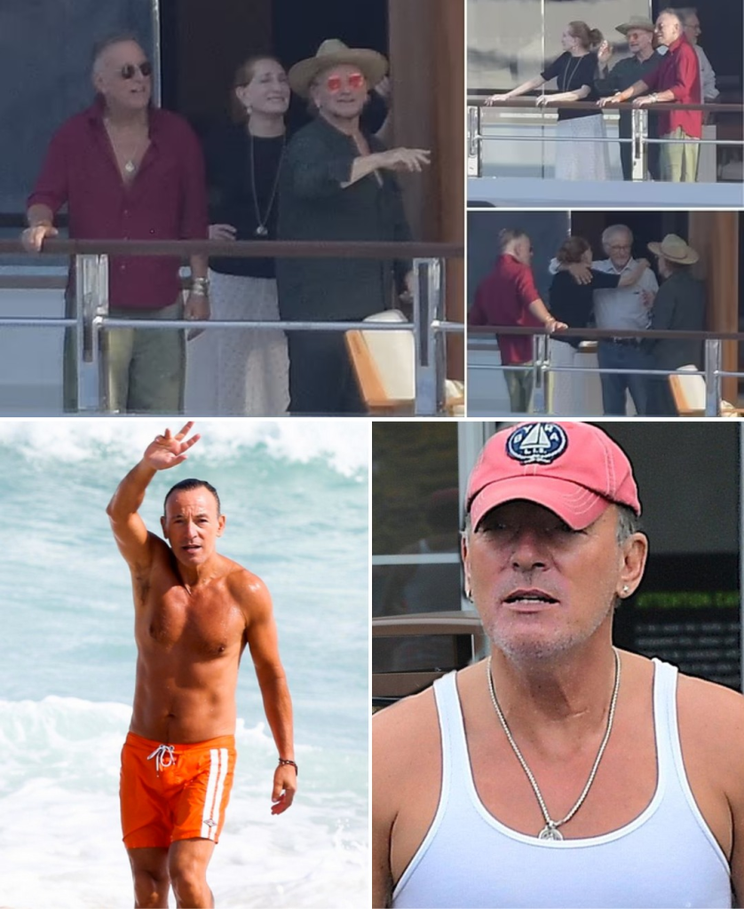 There’s something almost poetic about watching Springsteen in that setting — waves glinting under the Mediterranean sun, laughter spilling across the deck, and Bruce standing tall, shirtless, looking like a man who defied gravity itself. The French yacht wasn’t just a luxury escape; it became a floating stage where time seemed to surrender to charisma.