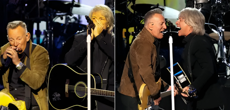 Jon Bon Jovi’s reaction said everything words could not. His jaw dropped, his eyes welled with tears, and in an instant, he leapt from his chair. “No… no way!” he mouthed, shaking his head as if to convince himself it was real. By the time he reached the stage, Bruce had already struck the first chords of “Who Says You Can’t Go Home,” a song that carried a message of roots, resilience, and the people who stand beside you no matter what.