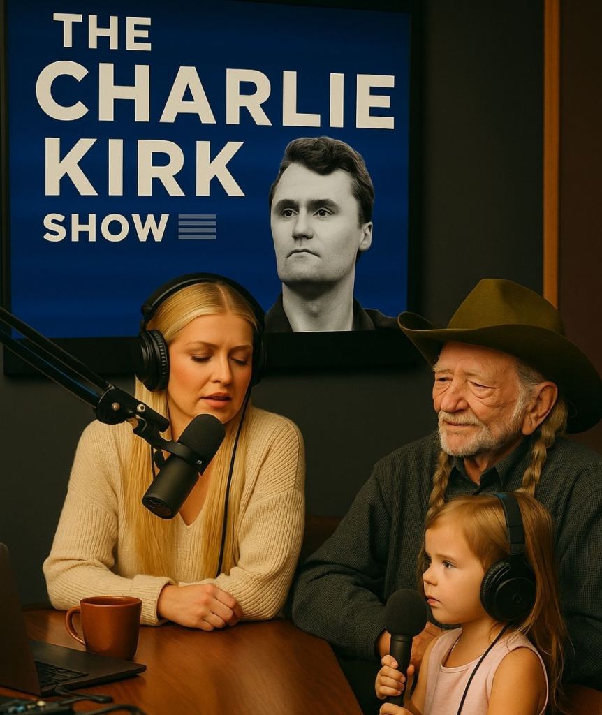 The episode opened with soft acoustic notes from Willie Nelson’s guitar, “Trigger,” the same instrument that has carried his voice through generations. Sitting beside him was Erika Kirk — poised, gentle, radiant with faith — her tone balancing grace and strength. The chemistry between the two was immediate and electric, not born of celebrity, but of shared reverence for the man whose name still moves nations: Charlie Kirk.