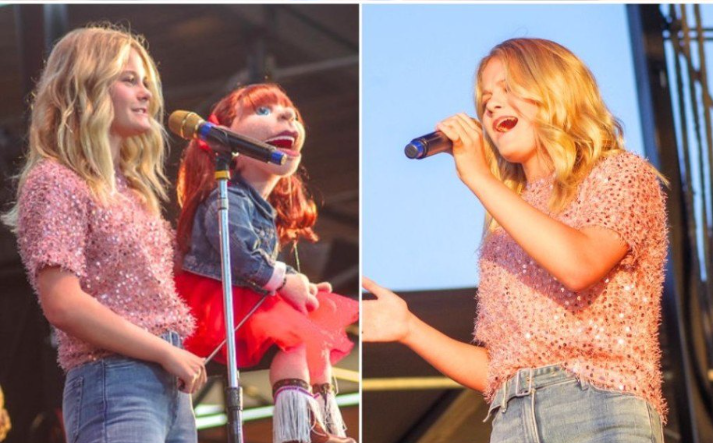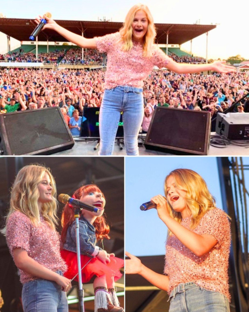 At the center of it all stood a small stage under a striped red-and-white tent. No massive LED screens. No pyrotechnics. Just a girl, a few puppets, and a single spotlight. Her name — of course — was Darci Lynne.