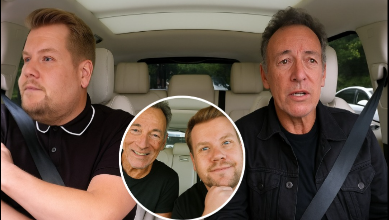 But late one evening beneath the deepening twilight of the New Jersey sky, Bruce Springsteen stepped into a vintage blue Mustang beside James Corden—and delivered a Carpool Karaoke moment unlike anything the show had ever witnessed. No cameras flashing. No studio lights. No editing. Just two men, two voices, and a song that has carried generations through heartbreak, hope, loss, and redemption.