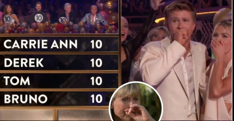 At the center of the stage, Robert stood still, breathing deeply, his eyes already teary before he took the first step. His partner and mentor for the night, Derek Hough, placed a reassuring hand on his shoulder — a gesture that seemed to ground him, steady him, and give him permission to let go of everything he’d been holding inside for years.