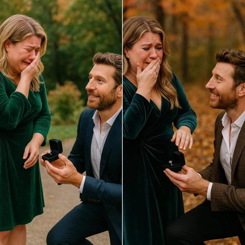 Clarkson, caught completely off-guard, reportedly gasped, covered her face, and whispered, “Oh my God… yes. Of course, yes.” She later said through tears, “I didn’t know love could feel this peaceful.”