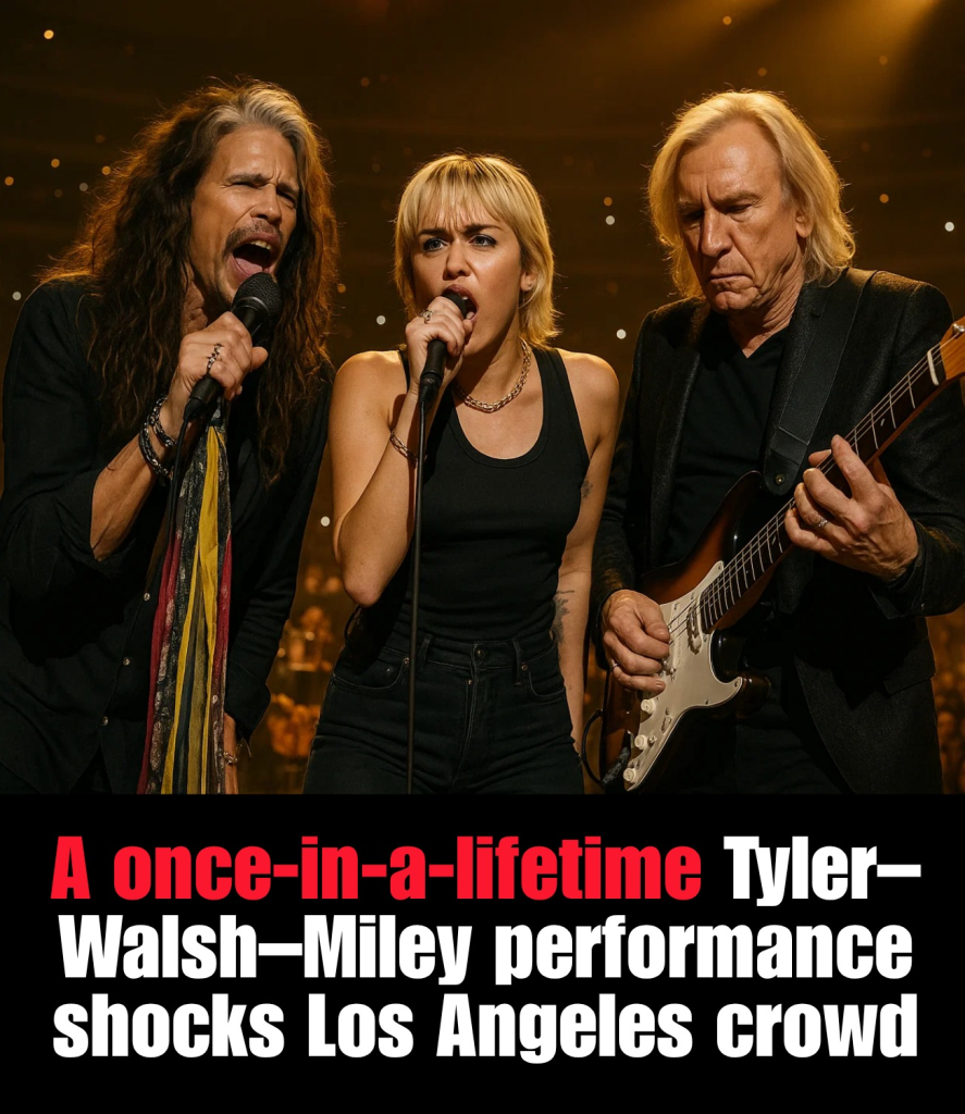 Los Angeles has seen its share of legendary nights — debuts, reunions, miracles, meltdowns — but nothing in its long, glittering musical history compares to what happened last night. In a moment that felt almost too surreal to be real, Steven Tyler, Joe Walsh, and Miley Cyrus stepped onto the same stage, at the same time, for the first-ever performance together.