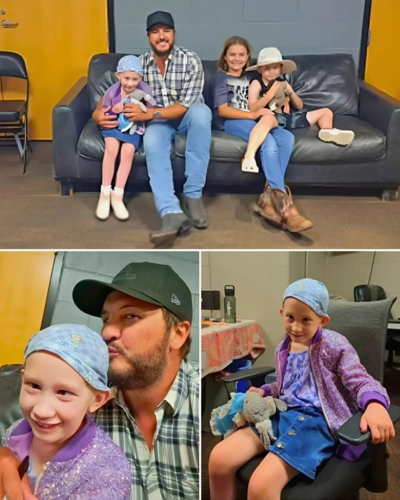 Two weeks later, on a warm Friday evening in Georgia — not far from Luke’s own hometown of Leesburg — Maddie and her parents were quietly brought backstage before his concert. She wore a tiny cowboy hat, a denim jacket, and carried a stuffed bear wearing a Luke Bryan T-shirt.