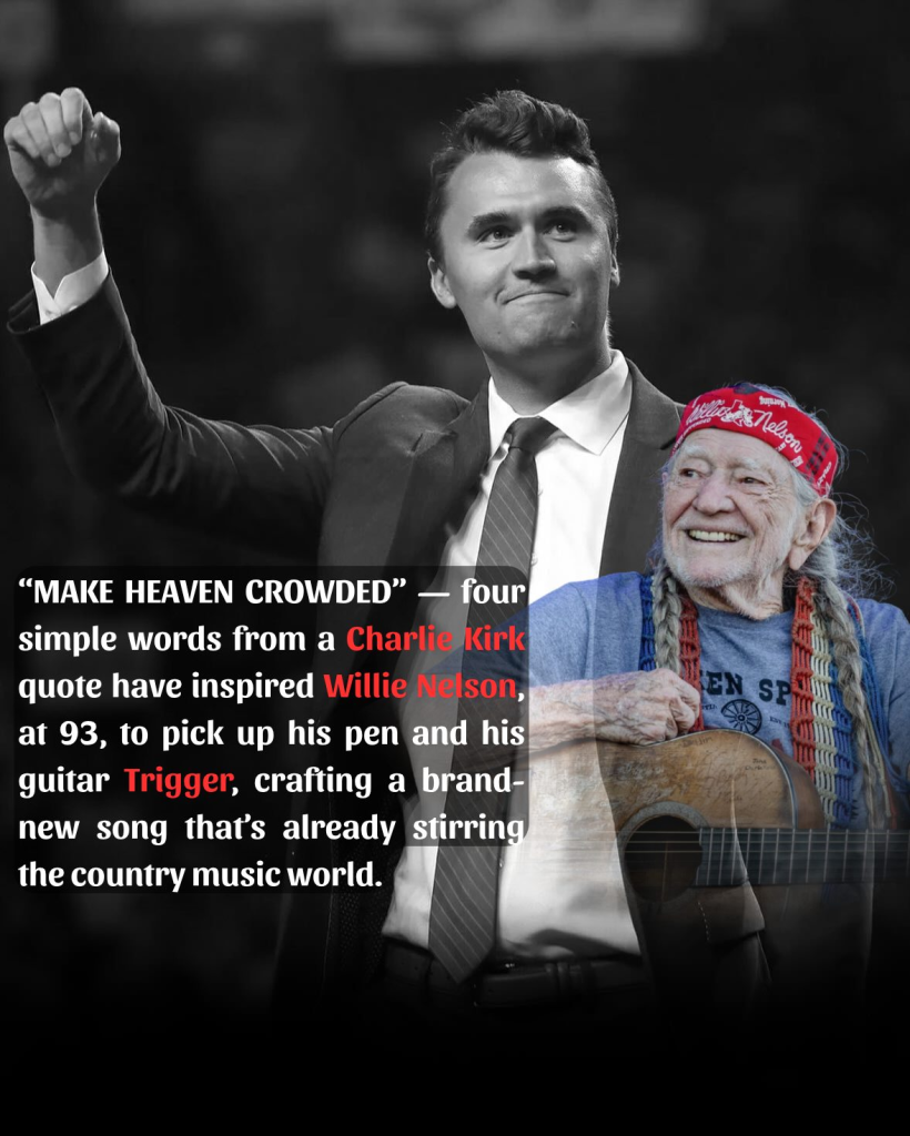 Charlie Kirk’s original phrase, “Make Heaven Crowded,” was never meant as a song lyric. It was a simple call — a reminder to live with purpose, to bring others closer to faith and hope. But when those words reached Willie Nelson, they took on new life.