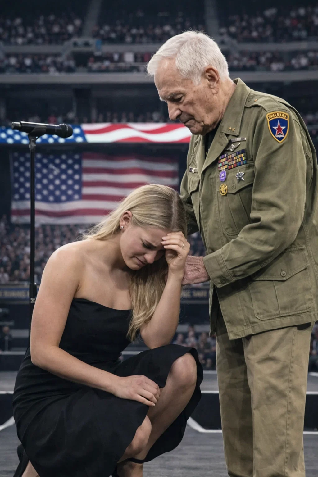 Security instinctively shifted, unsure whether to intervene or stand back. Cameras scrambled to follow her movement. Fans stood up, craning their necks, trying to understand what they were witnessing.