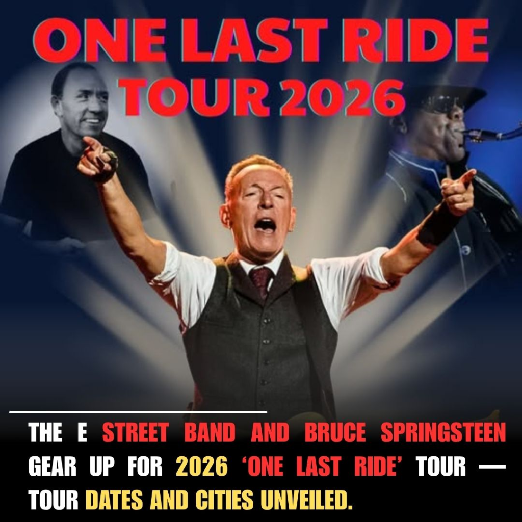 Bruce Springsteen and the E Street Band have officially announced their long-anticipated 2026 tour, a thunderous, heart-stirring revival appropriately titled One Last Ride. More than a tour, more than a celebration, this is shaping up to be a once-in-a-lifetime pilgrimage — a monumental farewell as The Boss prepares to step onto the open highway of music history one final time.