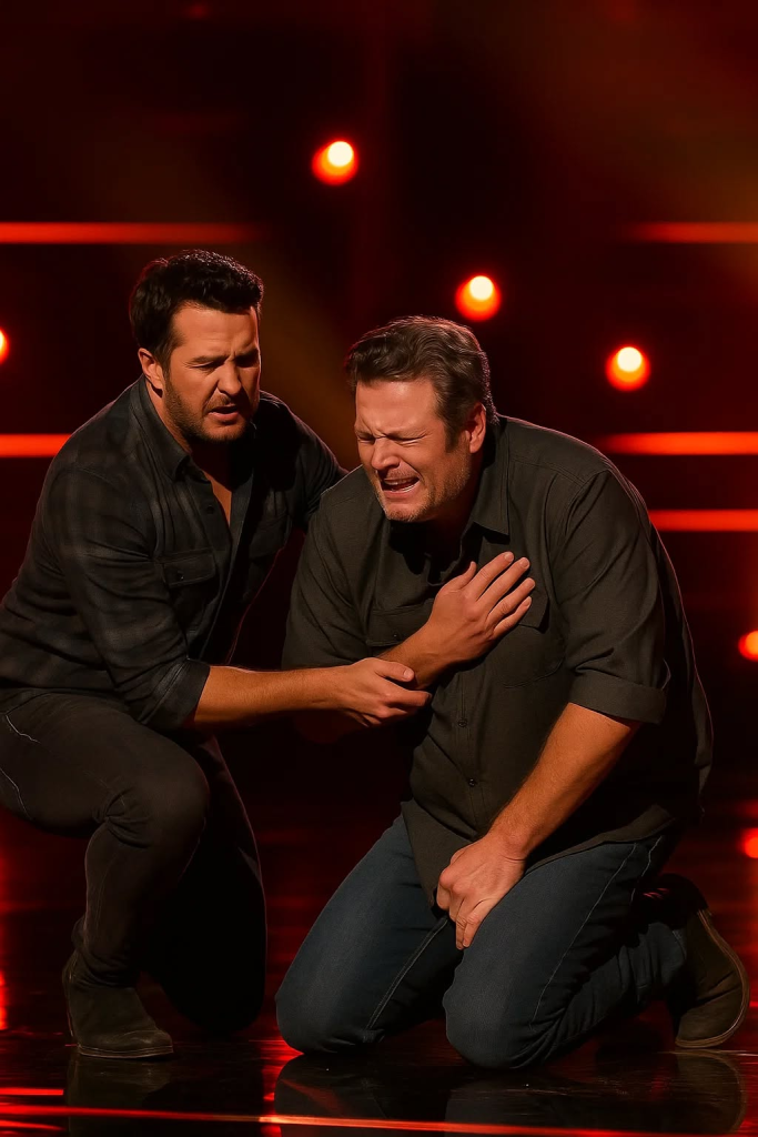 Luke Bryan wasn’t scheduled to appear yet. He had been backstage talking with crew, preparing for his surprise duet with Blake later in the show. But the second he saw Blake fall, Luke didn’t hesitate. He didn’t wait for direction. He didn’t look for stage managers.