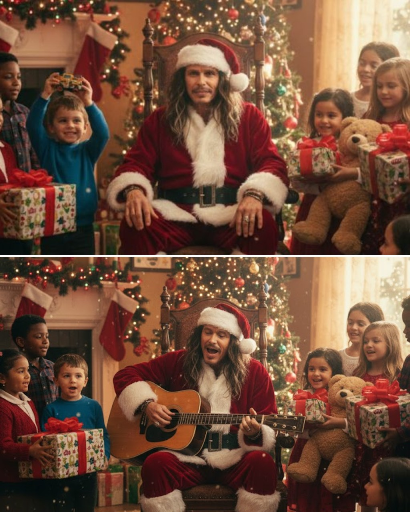 He showed up like a flicker of Christmas magic — the kind that arrives unannounced, without fanfare, without the roar of a stadium. No one expected a rock legend to step into that quiet, fluorescent-lit hallway, and yet Steven Tyler walked in as if the season itself had called his name. There was no entourage, no cameras, no booming voice shouting, “The Demon of Screamin’ has arrived!” Just a man in a soft coat, carrying something far more disarming than fame: a weathered guitar, a gentle smile, and a purpose no one could quite explain.