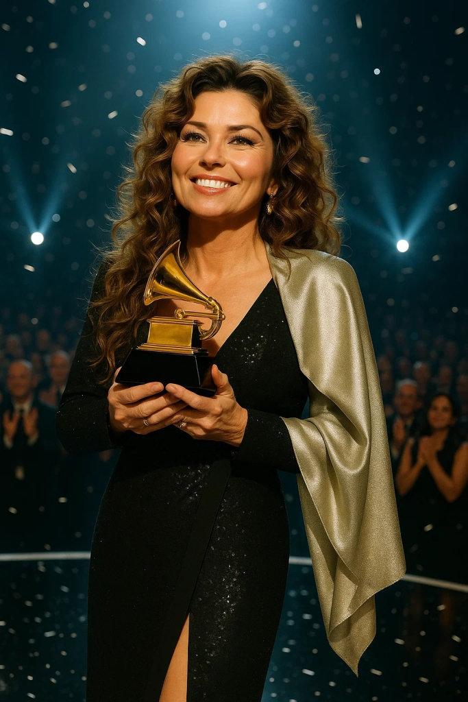 As she accepted the award, Shania didn’t reach for her prepared speech. She didn’t unfold a polite thank-you note. She didn’t start with sponsors, managers, producers, or colleagues.