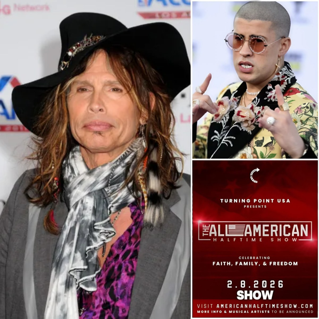 STEVEN TYLER PLEDGES $7 MILLION TO SUPPORT TURNING POINT USA’S “ALL-AMERICAN HALFTIME SHOW” — A FAITHFUL, PATRIOTIC ALTERNATIVE TO THE SUPER BOWL LX MAINSTAGE 🇺🇸✨