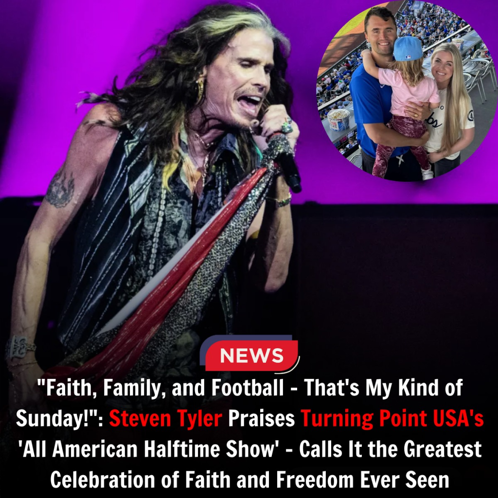 When Steven Tyler heard about Turning Point USA’s “All American Halftime Show,” his reaction wasn’t rehearsed, scripted, or even subtle. It was pure, unfiltered joy — the kind that makes a legend’s eyes sparkle and the crowd around him roar to life.