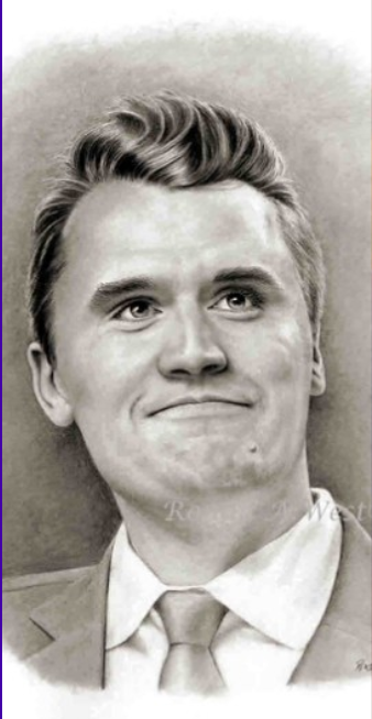 It was a portrait of Charlie Kirk, the late conservative icon and philanthropist whose legacy of faith, service, and patriotism continues to ripple through America. The artwork, painted by acclaimed realist artist Ethan Cole, depicted Kirk standing before a sunrise — one hand over his heart, the other holding a folded American flag. The brushstrokes captured not just his likeness but the spirit of a man whose voice once ignited movements and inspired millions.