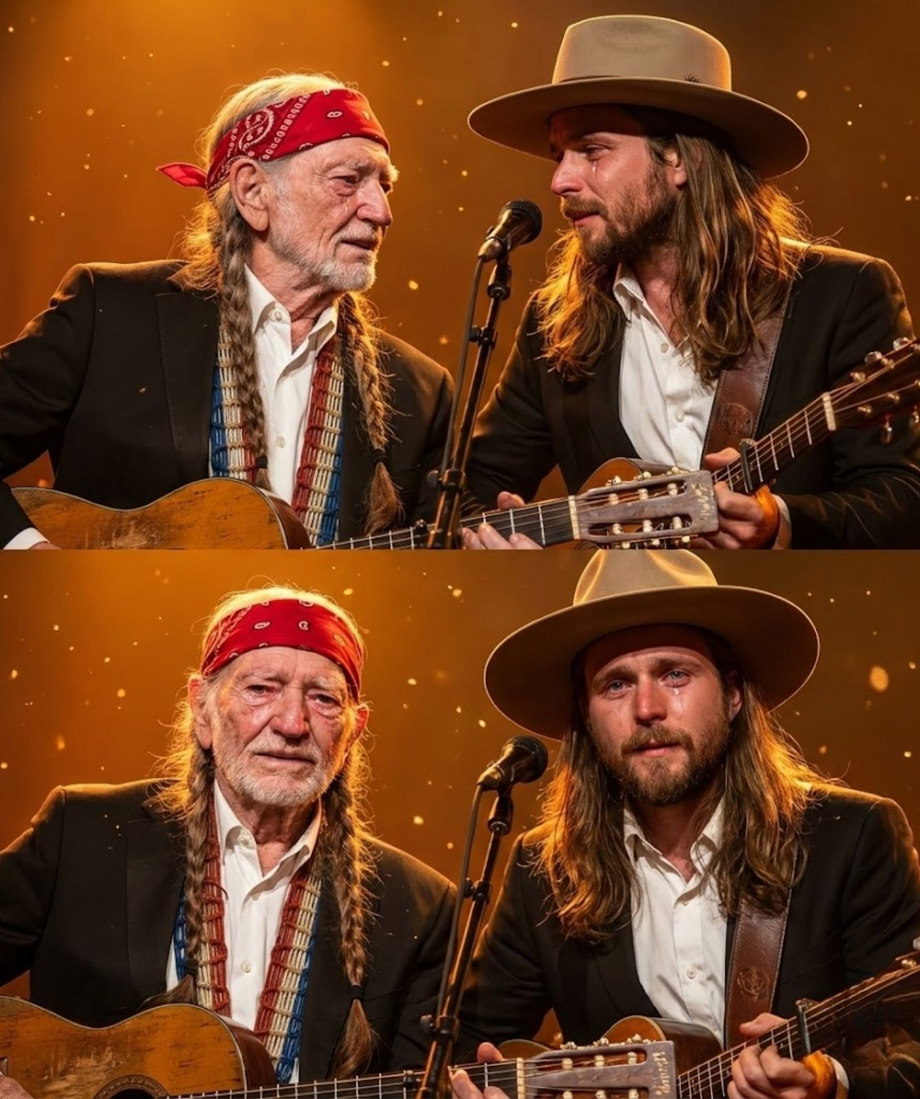 The interview took a particularly heart-wrenching turn when Lukas described a recent family moment. He recounted a quiet night at Willie’s ranch, when he and his father sat beneath the stars, guitars in hand, sharing songs and stories from their intertwined lives. “We didn’t speak much about what I had decided at first,” Lukas recalled. “But then, my dad looked at me and said, ‘I respect you, son. You have to live your truth.’ That moment… it felt like a miracle. Like permission to be myself while still holding the legacy of this incredible family.”